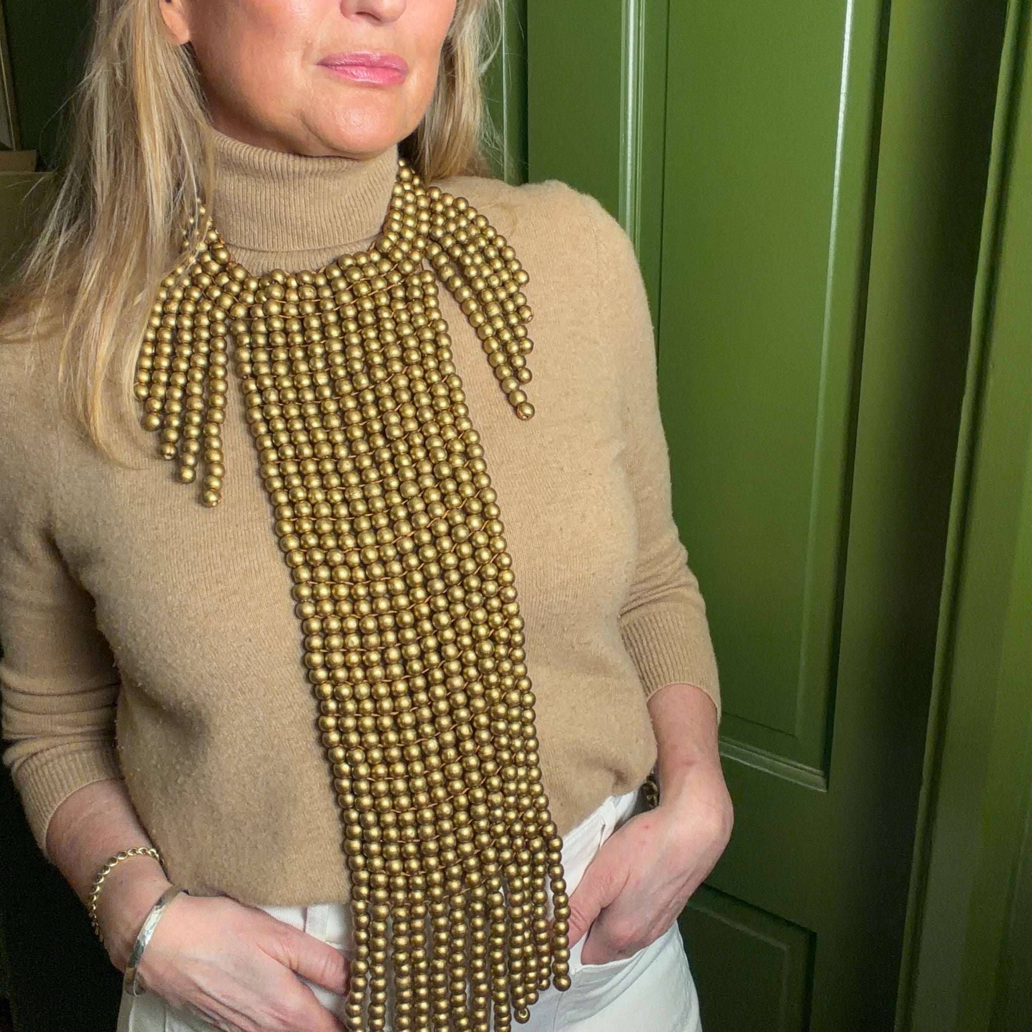 Style a chunky statement necklace over a simple knit, a sculptural gold cuff bracelet with a tailored shirt, a simple leather handbag with a trouser suit, a cosy blanket scarf with a trench coat or a crystal-encrusted cocktail ring or chandelier earrings for date night. Every occasion is considered.